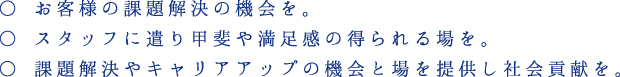 個人意思と会社意思が、基本的に一致すると考える集団(個全合一)を作り、お客様とスタッフの架け橋を担います。